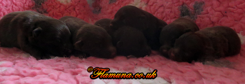 Puppies are born in the bedroom where they will remain for the first 2 weeks. As they grow, they move downstairs to get used to everyday noises, sights & visitors and are well socialised with family, friends and their dogs. When they are big enough they are taken on regular car journeys & carried out & about to get used to the sights & smells of outdoors.